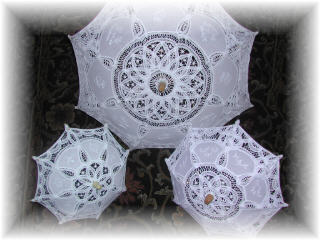 You will find a variety of Battenberg lace parasols in different sizes, styles and colors. We carry